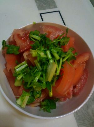 西红柿,香菜切丁备用。