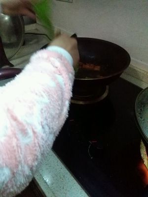 放入你喜欢的蔬菜,翻炒。