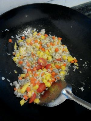 倒入米饭一起翻炒。加点盐。