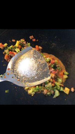 再放西兰花和西红柿 翻炒至有西红柿汁