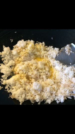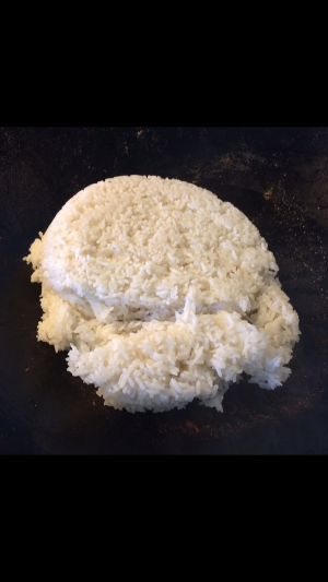 加米饭,按压,弄碎,不断翻炒至米饭散开