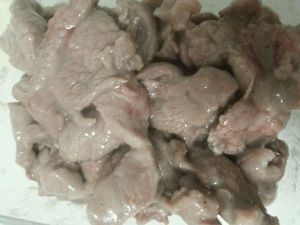 花椒水放凉后,搅拌入羊肉,加少许淀粉,料酒拌均匀,热锅凉油炒熟