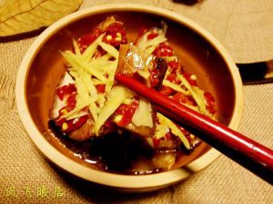 鱼剁成块铺底,剁椒加糖,酱油,鱼露和少许油拌匀铺鱼块上,姜切丝撒上