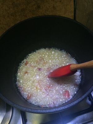 第一步:炸油葱酥!锅里下油,油量可以盖过之后放入的红葱头即可!大火将油烧热,倒入红葱头,慢慢搅拌,直到金黄色。