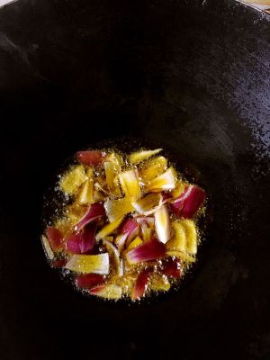 热锅放油,洋葱放入锅中炸成洋葱酥