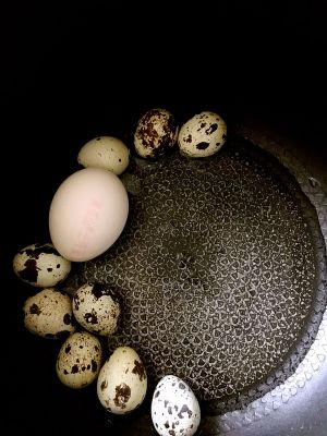 鹌鹑蛋和鸡蛋提前煮熟,备用。