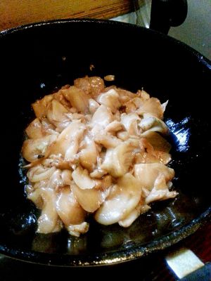 大火再放入甜面酱两勺,老抽两勺(自己根据自己做多少调配放多少,这里说明的是比例),糖两勺