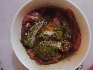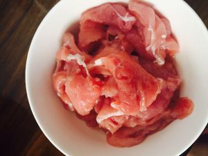 里脊肉片用调料腌制,用料有孜然粉,盐,鸡精,料酒,白砂糖腌制5分钟,也可以根据自己口味调制黑胡椒,麻辣口味的。