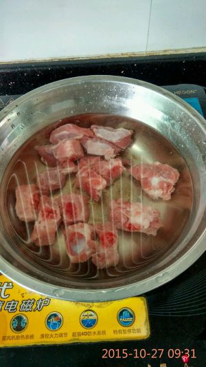 排骨用冷水泡半小时左右,去血水