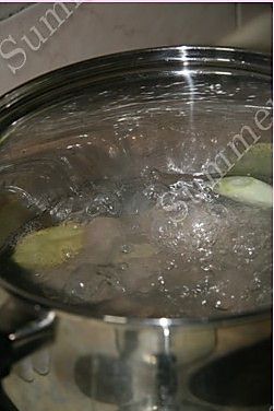 开水后放入处理过的排骨,倒适量料酒,撒少许五香粉,大火煮开后,改小火煮一个半小时;