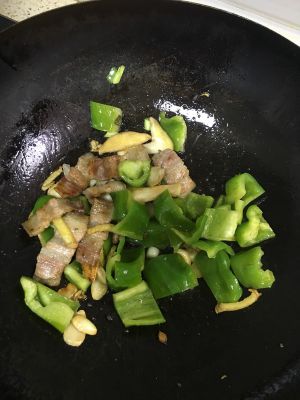 放入青椒翻炒