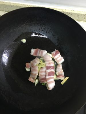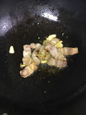 姜蒜与五花肉一起炒,加入适量盐调味