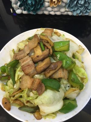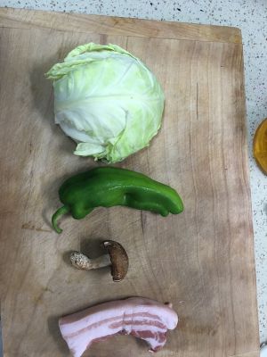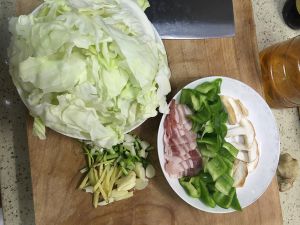 准备好包菜,青椒,香菇,五花肉