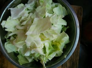将圆白菜撕成大小适中的形状。