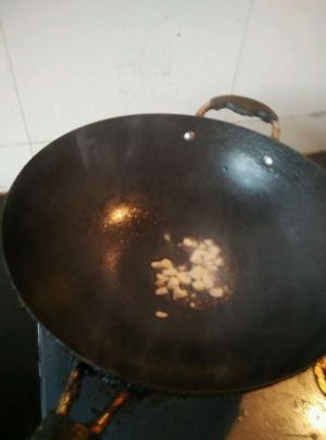 大火将锅烧热,之后倒入适量油,油热后放入大蒜丁