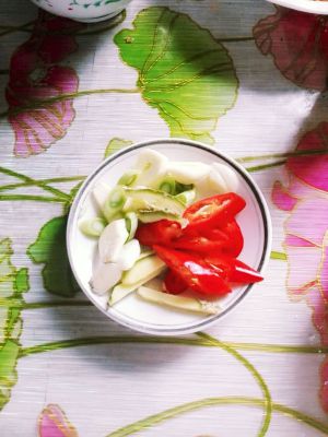 准备好配菜,蒜苔,煮好的玉米,和豆干,也可放拖水的芹菜!