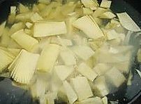 带皮五花肉洗净,切成2厘米见方的块,竹笋去壳切滚刀块。