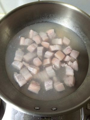 锅里放水煮开放入五花肉煮两分钟去血沫。