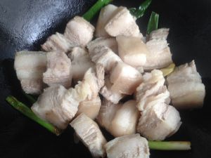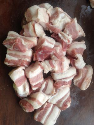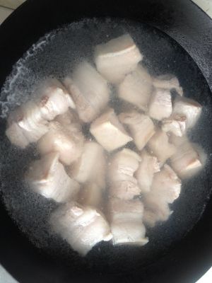备好材料,五花肉切块,焯水沥干。