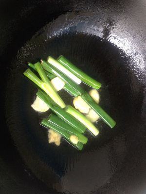 锅底倒入适量油,下葱段姜片爆香!