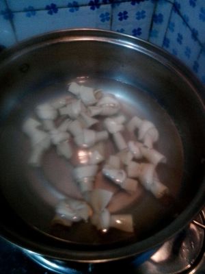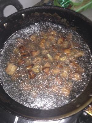 干净锅,倒入炼过油的油,添清水烹止干