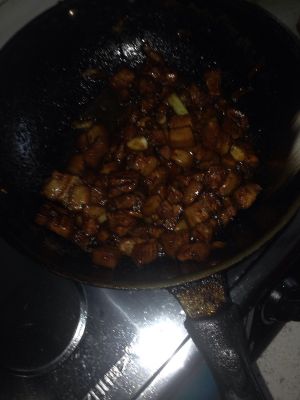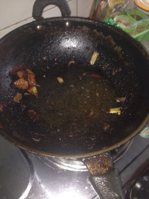 关火,放葱姜蒜,炒香,放肉