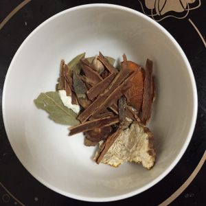 加入红烧酱油,香叶,八角,桂皮,草果。炒制一下。