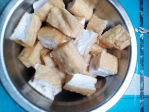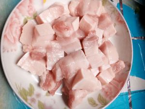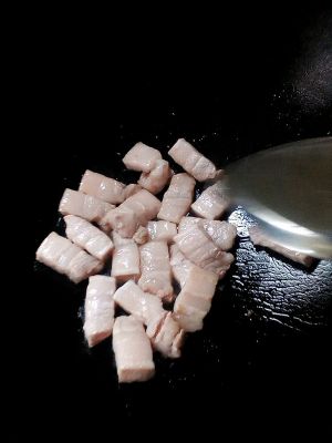 将肉切成小方块,在锅中倒入少许油,将肉进行煸炒,把猪肉的油熬出来