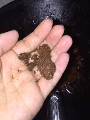 翻炒大约十分钟到十五分钟左右,我没把时间,还是要看肥肉的油是不是炒出了五成左右,然后加入生抽和老抽,用量根据自己喜欢的颜色加入,翻炒均匀