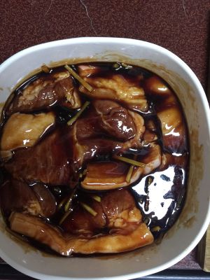 把肉均匀腌制到酱料里,中途翻两次面。可以帮助均匀入味