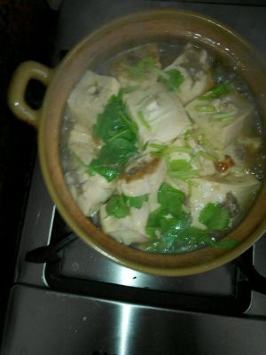 煎好以后放入沙煲,放点水,盐煲,煲开后小火煲十分钟,撒上葱花就行了