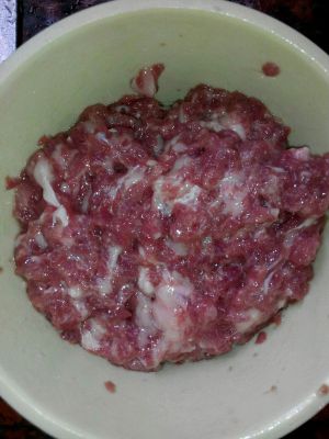 猪肉剁成馅(加盐、蠔油、生粉、油拌好)
