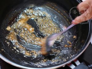 熬制到气大泡,糖的焦香散发出来,颜色也深了。