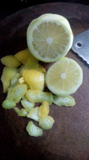 柠檬切皮,白色部分最好不要切到,会苦。整颗柠檬切块挤汁。