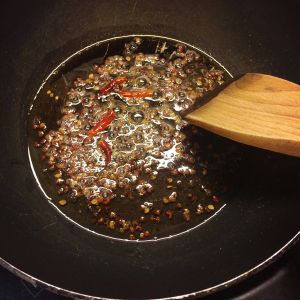 另起一锅 热锅冷油 爆花椒和干辣椒爆香