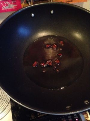 锅里放油。油热后放冰糖。