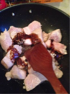 放入肉块,翻炒,至肉块泛黄