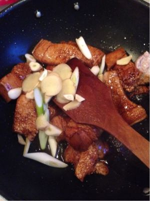 放入五花肉翻炒
