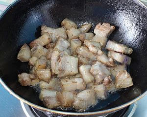 切好的五花肉块放入锅中翻炒