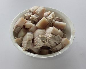 五花肉切小块(要先洗后切)
