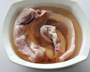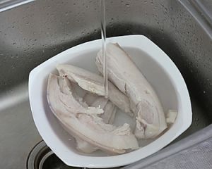 将五花肉放入清水中浸泡一会,去血水,洗净捞出