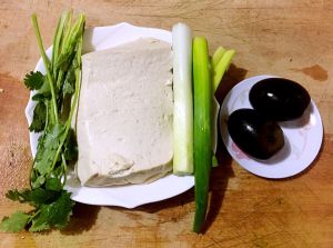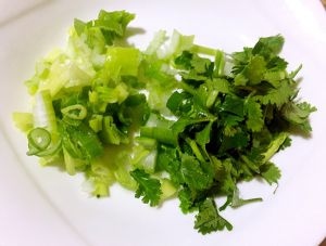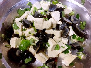 准备原材料皮蛋、豆腐、葱、香菜备用