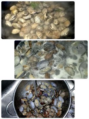 买来的新鲜花蛤浸泡于清水中,水中倒入适量的盐,让花蛤将泥沙吐出,如果花蛤不太脏,两三个小时就可以。