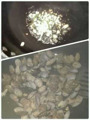葱姜蒜入油锅煸炒出香味,倒入花蛤,翻炒