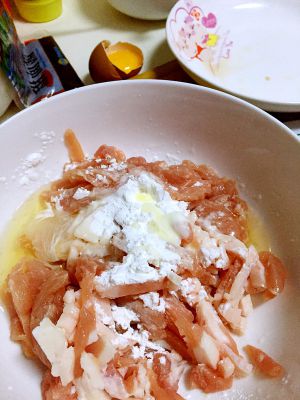 猪肉切丝,放一个蛋清,淀粉,少许油,少点点水