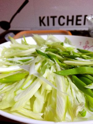 胡萝卜,黄瓜,大葱切丝,姜切片,泡点葱姜水备用