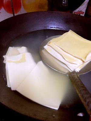热锅,锅里放油,爆炒一下出锅,放在盛满葱丝滴盘子里