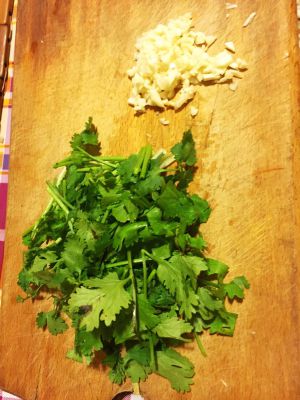把蒜切小碎末和芝麻一起放在鸡丝里!还有糖,醋,生抽,盐也要放进去哦!