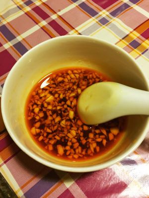 将蒜末和其他调料放入一个小碗,搅拌均匀至盐化。