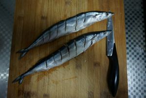 去内脏,记得把鱼肚里一层黑膜也给清洗掉。一人一条就足够补充一天所需的蛋白质了。
